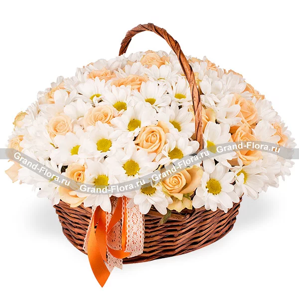 Корзинка, которая расскажет за Вас о Ваших самых светлых и нежных чувствах. Подарит Вашему близкому человеку тонкий намек на искренность Ваших намерений и вызовет улыбку. Элегантная композиция из роз и хризантем, окутанная романтичным шлейфом, станет прекрасным подарком второй половинке и подарит моменты, которые не забываются. Дарите счастье с доставкой, которое можно не только почувствовать.